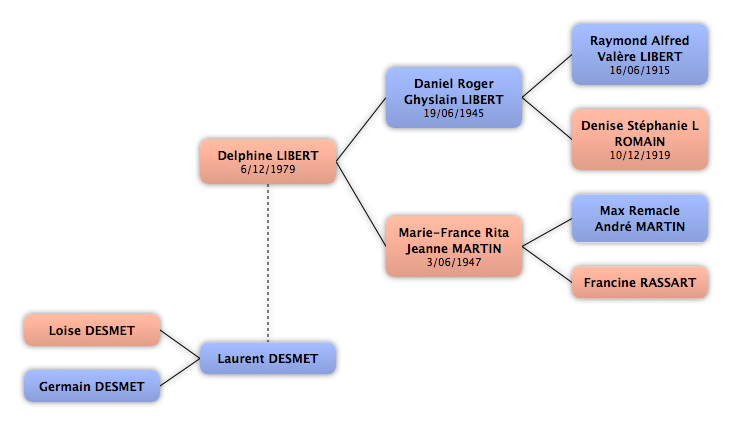 Francine Ghislaine Marie DORMAL | Tante au 2ième degré | 20/03/1946 | Cheratte, 4602, Liège, Wallonie, BELGIQUE | | |
