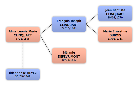 Mélanie CLINQUART | Aunt | 13/05/1813 | | 23/03/1841 | |