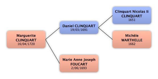 Marguerite Clinquart CLINQUART | Aunt | 17/01/1688 | Maubray, 7640, Hainaut, Wallonie, BELGIQUE | 21/02/1727 | Maubray, 7640, Hainaut, Wallonie, BELGIQUE |