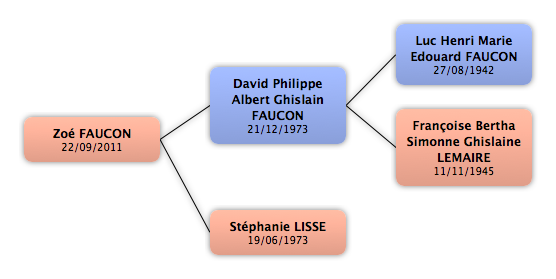 David Philippe Albert Ghislain FAUCON | Père | 21/12/1973 | Haine-Saint-Paul, 7100, Hainaut, Wallonie, BELGIQUE | | |
