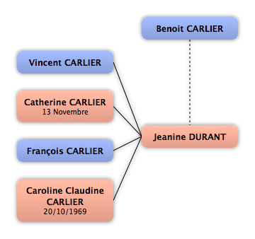 | Nom | Lien de parenté | Né(e) le | Lieu de naissance | Décédé(e) le | Lieu de décès |