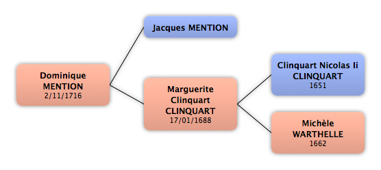 Daniel CLINQUART | Oncle | 19/03/1691 | Maubray, 7640, Hainaut, Wallonie, BELGIQUE | 3/02/1763 | Maubray, 7640, Hainaut, Wallonie, BELGIQUE |