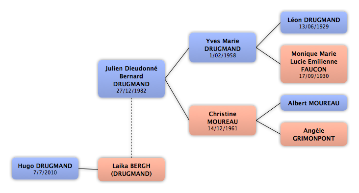 Hugo DRUGMAND | Neveu au 5ième degré | 7/7/2010 | | | |