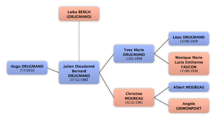 | Nom | Lien de parenté | Né(e) le | Lieu de naissance | Décédé(e) le | Lieu de décès |
