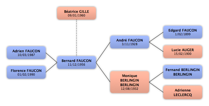 | Nom | Lien de parenté | Né(e) le | Lieu de naissance | Décédé(e) le | Lieu de décès |